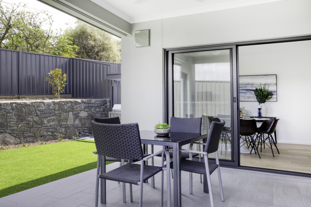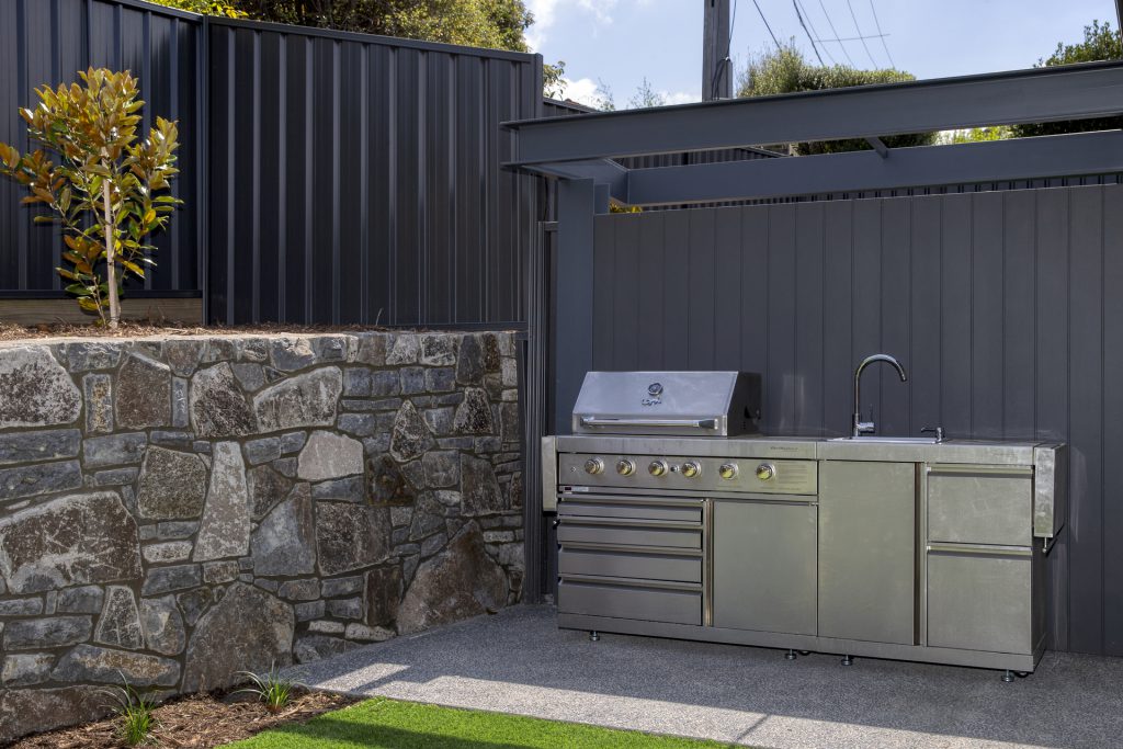Outdoor alfresco area with built-in barbecue.