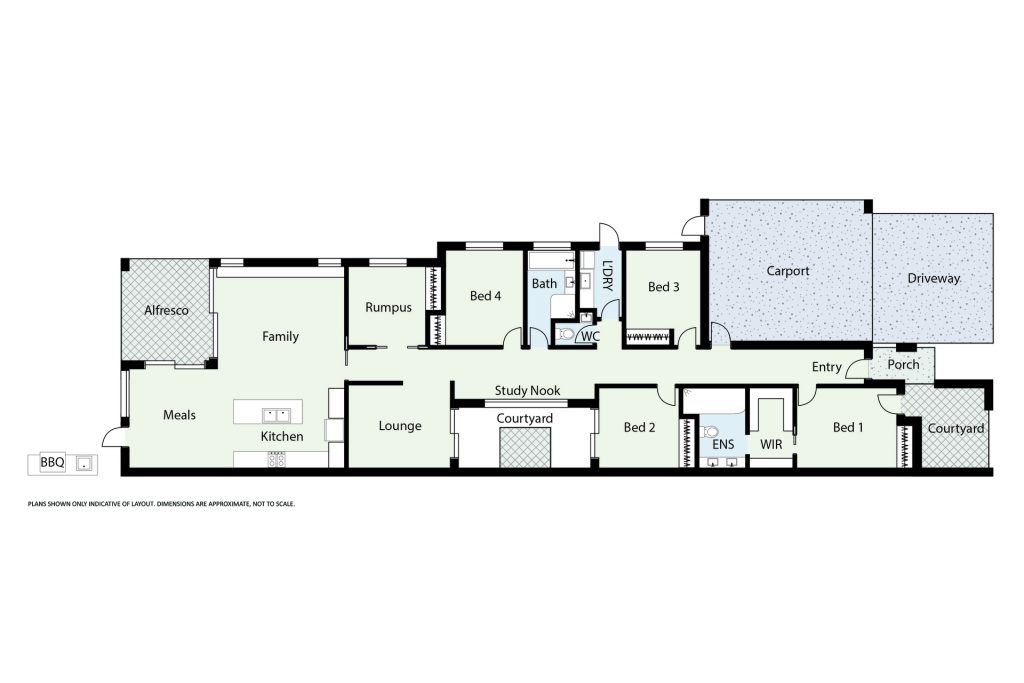 Additional three bedrooms are generously sized and all include built-in robes.