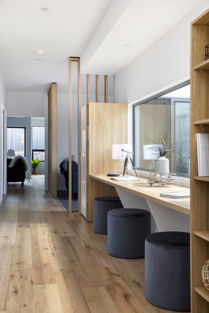 Convenient and stylish home office area/study nook.