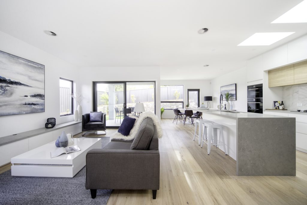 The stylish open plan living area provides an abundance of space to entertain family and friends with this area directly flowing through to the outdoor covered alfresco area.