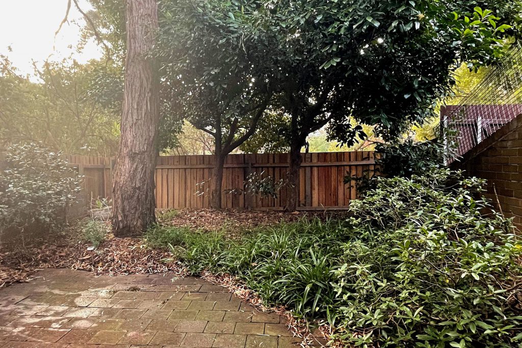 Private enclosed backyard with shed