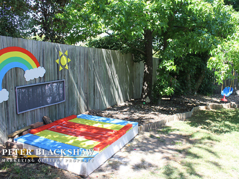 – Fully enclosed easy care garden with established trees,shrubs and hedges, and includes raised vegetable garden beds which currently provide an abundance of organic seasonal produce. Shady trees and under-deck paved area, also currently has sandpit suitable for small children.