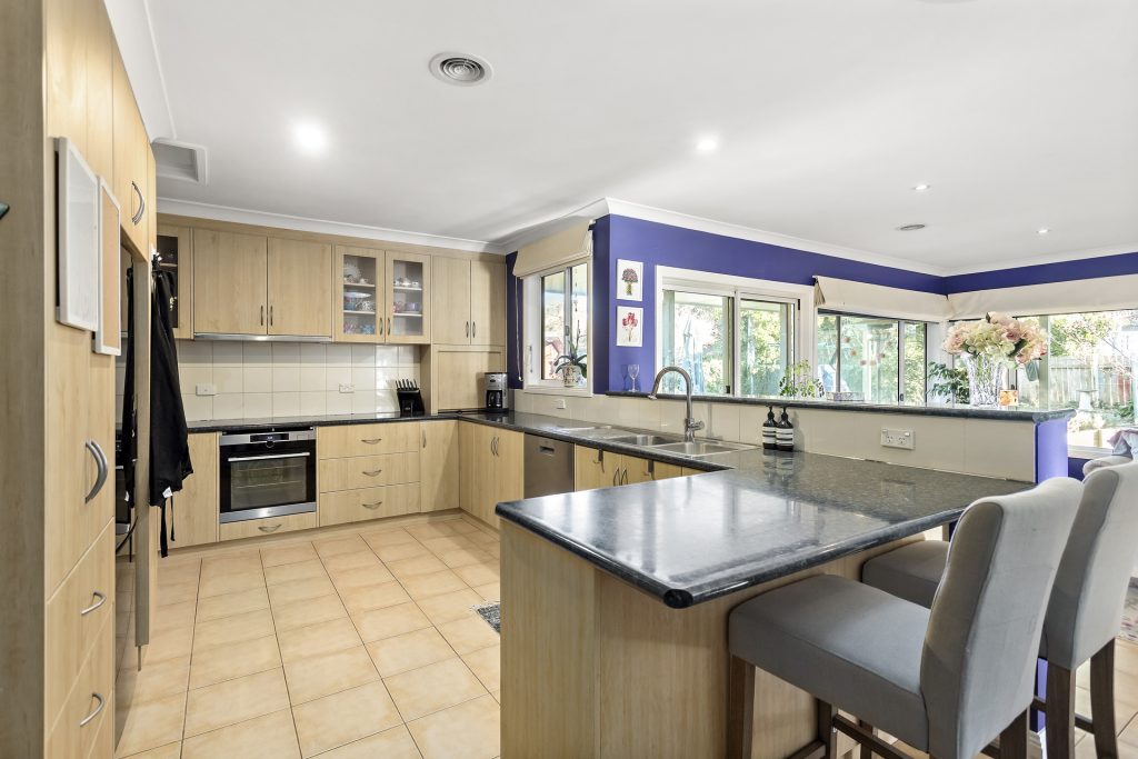 The home has been beautifully styled throughout by the owner. It’s has a level of elegance that is easy to see yet highly functional. There are 2 living areas. One flows seamlessly off the main entry and is a quiet room with beautiful décor. From the entry you’ll get a glimpse of the kitchen. It’s an incredible kitchen. There’s an abundance of bench space, cupboard space and chic European appliances. The kitchen also over looks the large sunken family room plus look out to the private and secure rear garden.