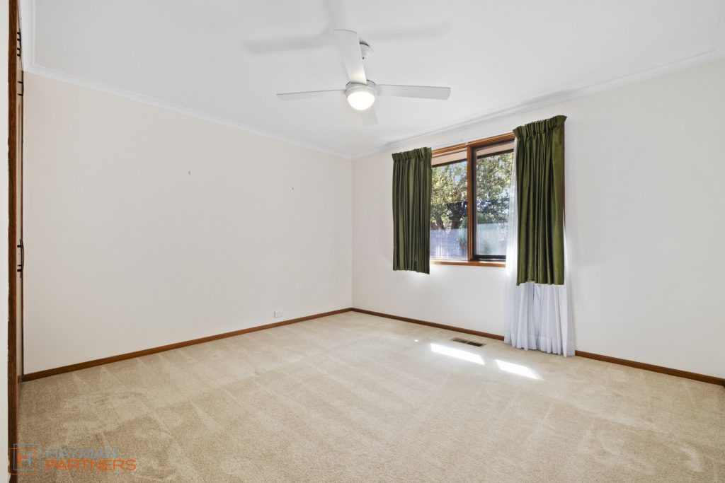 Welcome to this well-maintained four bedroom, ensuite home, perfectly designed for family living in the desirable suburb of Kaleen. With ceiling fans and built-in-robes in three of the four generously proportioned bedrooms and a thoughtfully designed dual living space layout, this home ensures comfort and practicality for all. The open-plan north facing living and dining areas are filled with natural light, while the kitchen boasts an electric stove, oven, walk in pantry, breakfast bar and dishwasher, making meal preparation a breeze. Ducted gas heating and a split-system air conditioner keep the home comfortable year-round, no matter the season.