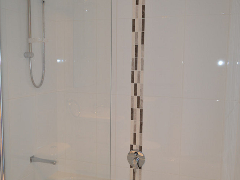Two-way bathroom with convenient shower/deep bath combination.