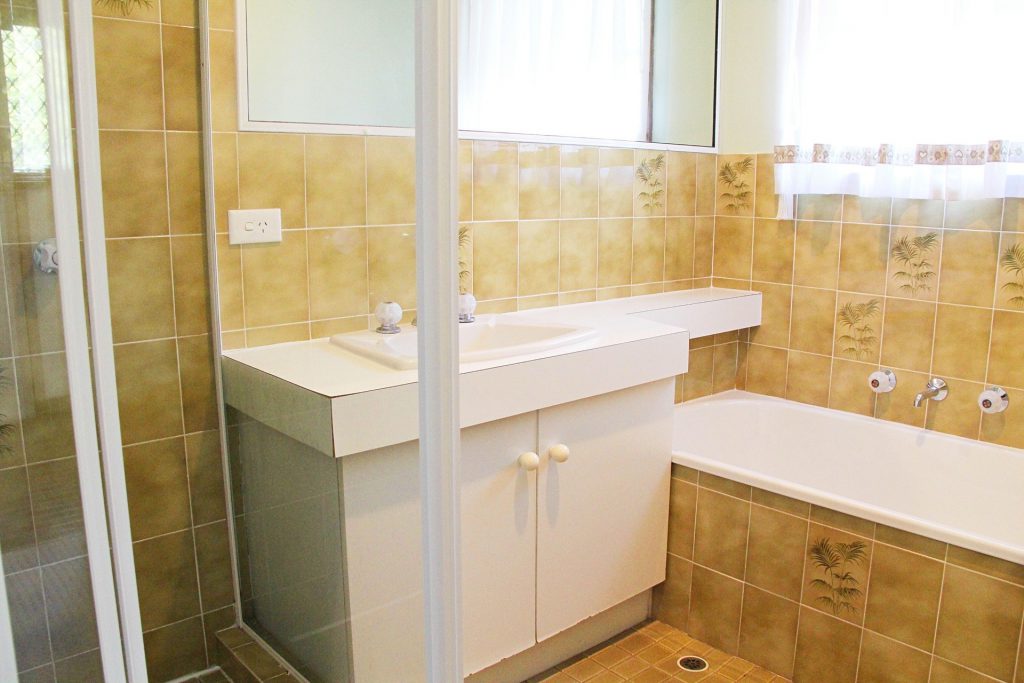Functional main bathroom with bathtub and separate shower.