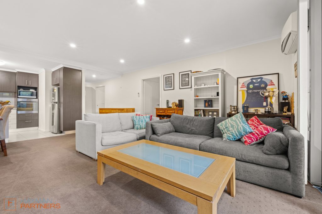 Boasting modern lines, colours and design throughout the spacious open plan living area which includes a beautiful lounge area, dining area that fits a six seater table comfortably. The modern kitchen with ceaser stone bench tops, quality appliances and breakfast bar overlooks the living and the landscaped enclosed courtyard.