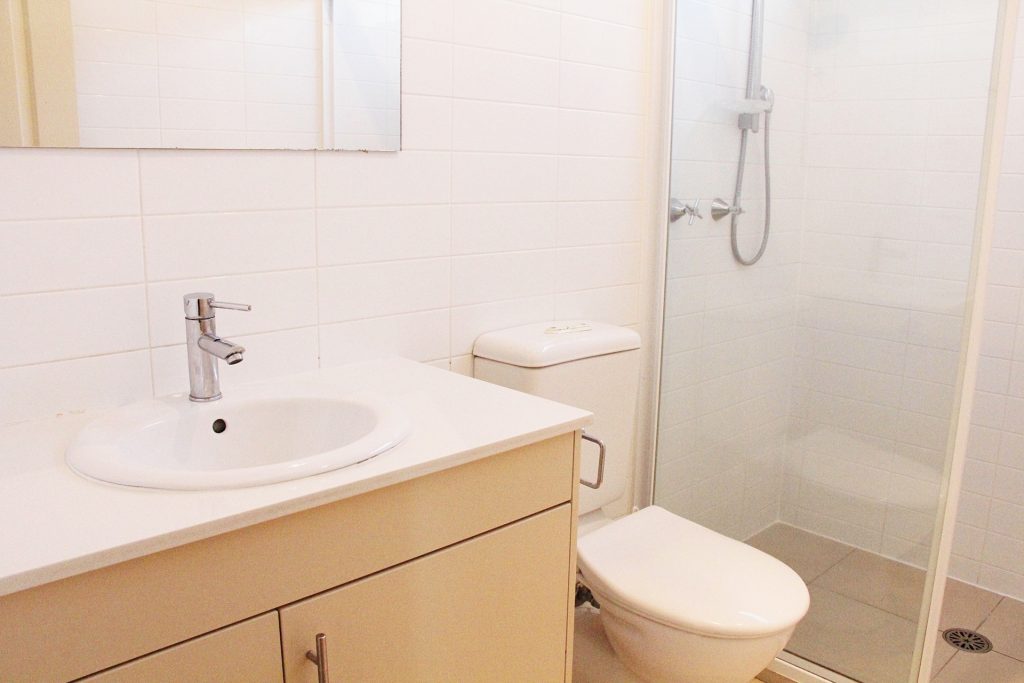 The bathroom is light-filled and contemporary with quality stone benchtops, shower and toilet.