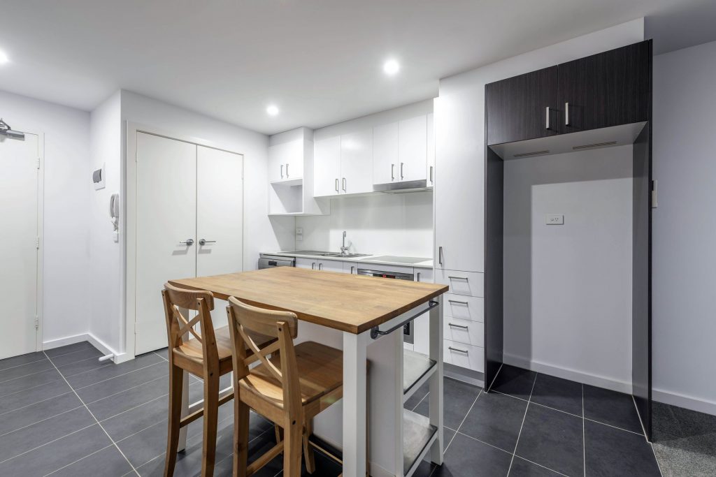 – Functional kitchen with quality AEG appliances including dishwasher, electric cooking. Large fridge space, dedicated microwave space and bonus island breakfast bar.