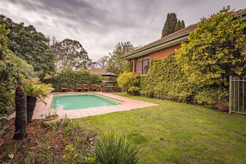 Gorgeous established gardens with the backyard featuring a delightful inground pool.