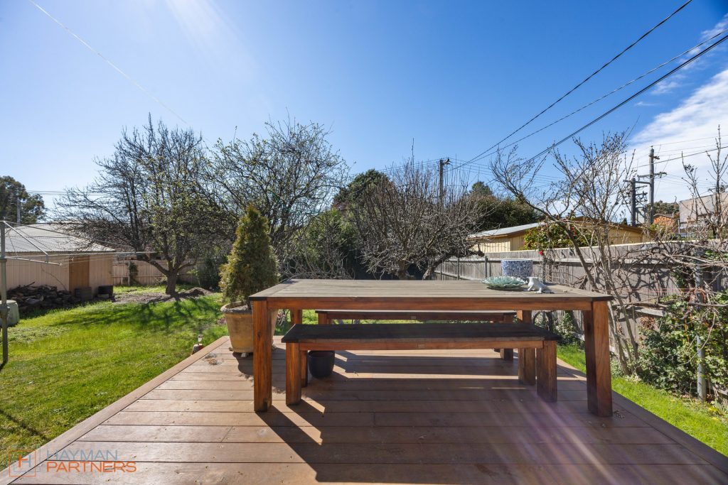 Step outside onto the sunlit deck, perfect for relaxing or entertaining, with a large yard ideal for families.