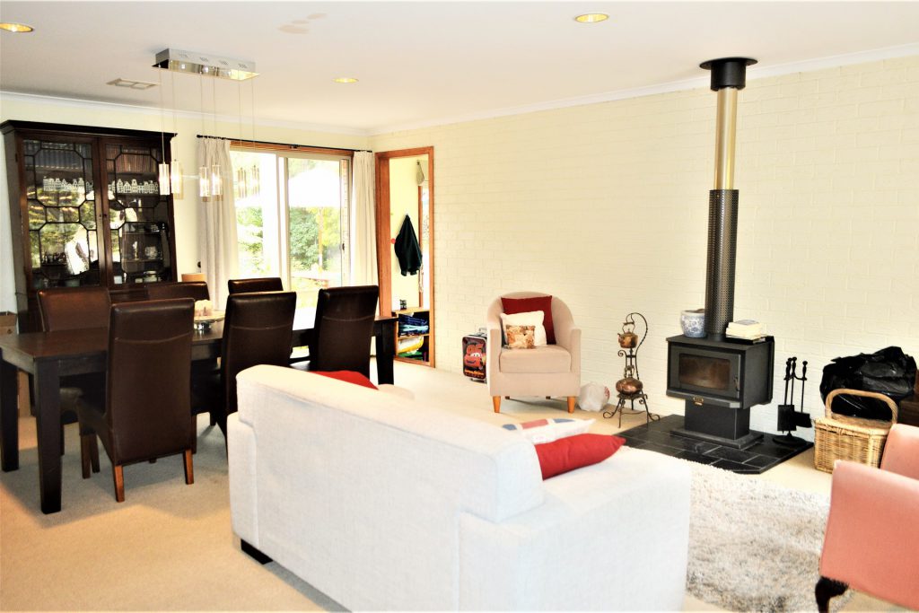 – Elegant formal lounge with feature lighting and slow combustion fireplace, will easily accommodate modern large modular lounge furnishings and formal dining suite.