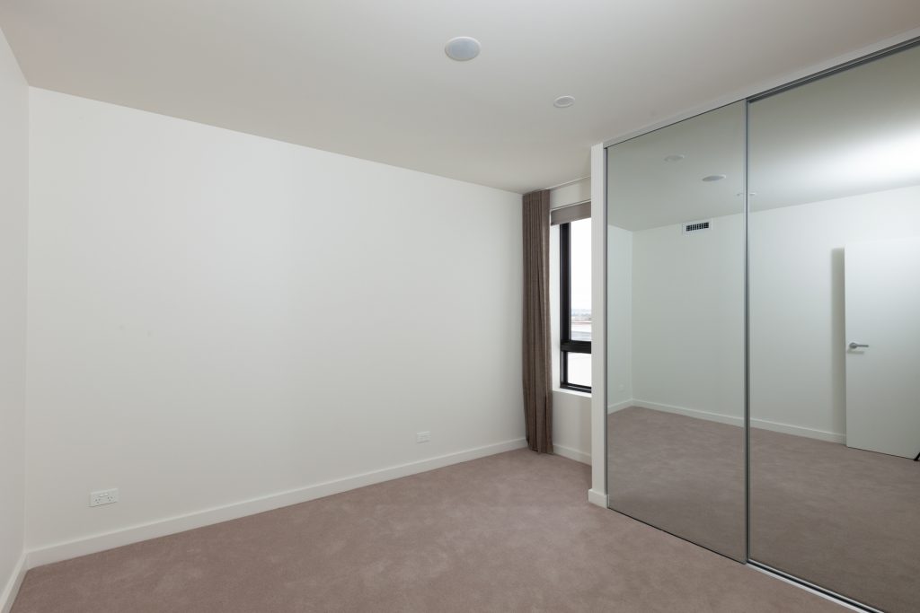 Second bedroom with mirrored wardrobes.