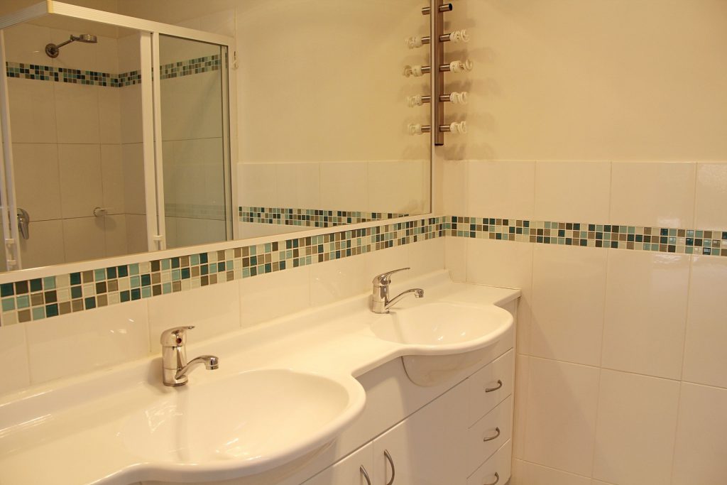 – Spacious Master bedroom with walk-in-robe, ensuite with double vanity and leads to wooden deck.