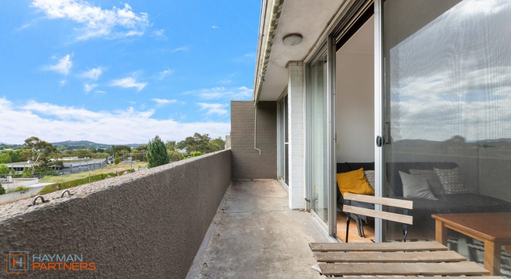 The open plan living area opens to a balcony that enjoys views across to Mount Taylor and down the valley towards Woden.
