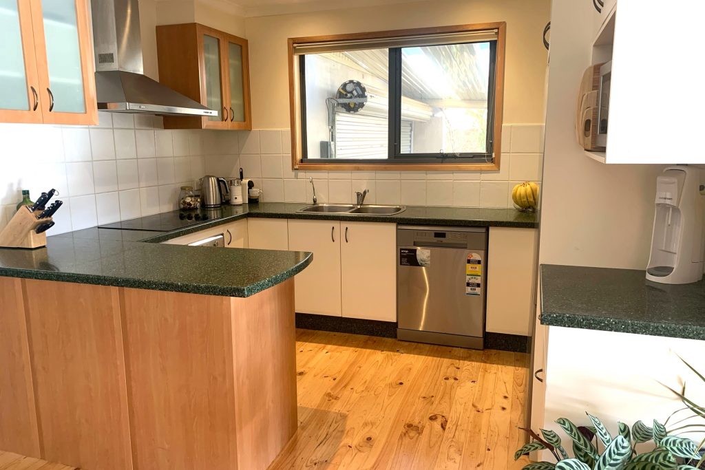 – Functional kitchen including electric cooktop, dishwasher with great storage space.