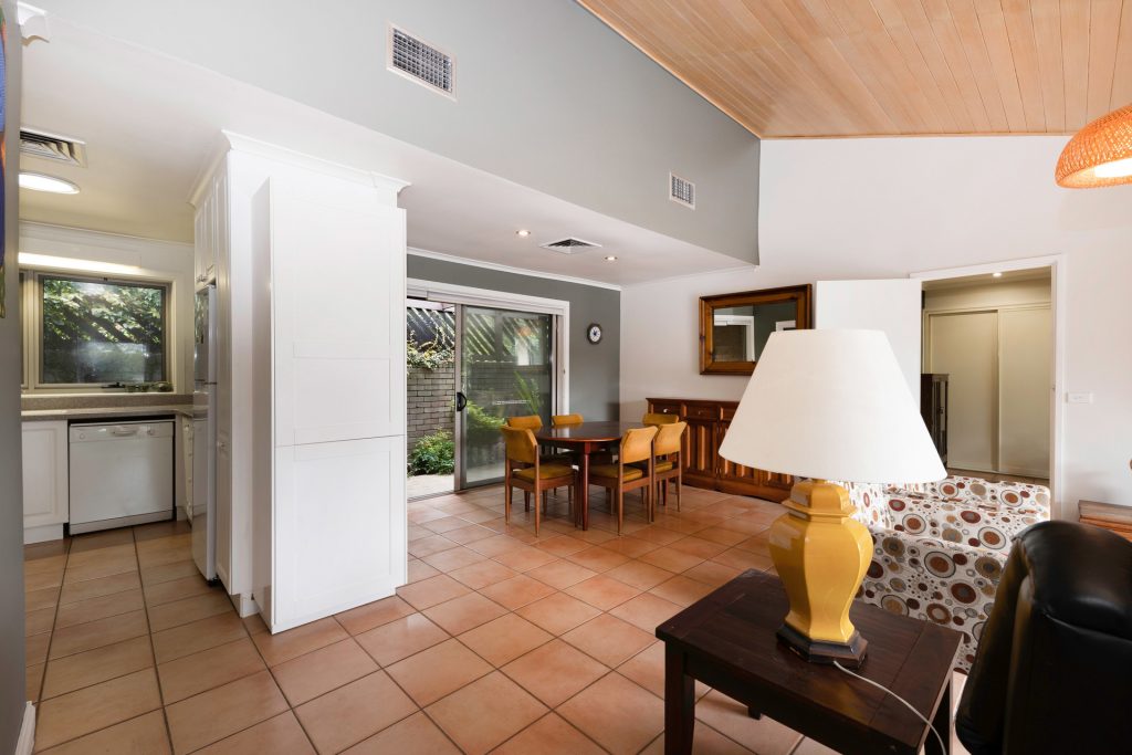 As you make your way through the security gate and up the steps into the formal entrance you immediately say “wow” under your breath as you notice the open plan light filled lounge and dining room with high raked ceiling and floor to ceiling double glazed windows and doors on both sides of the room that access to the front courtyard and the rear verandah. The updated kitchen has a dishwasher, pull-out pantry, electric cook top, oven and grill and there is a separate laundry room with built in storage cupboards.