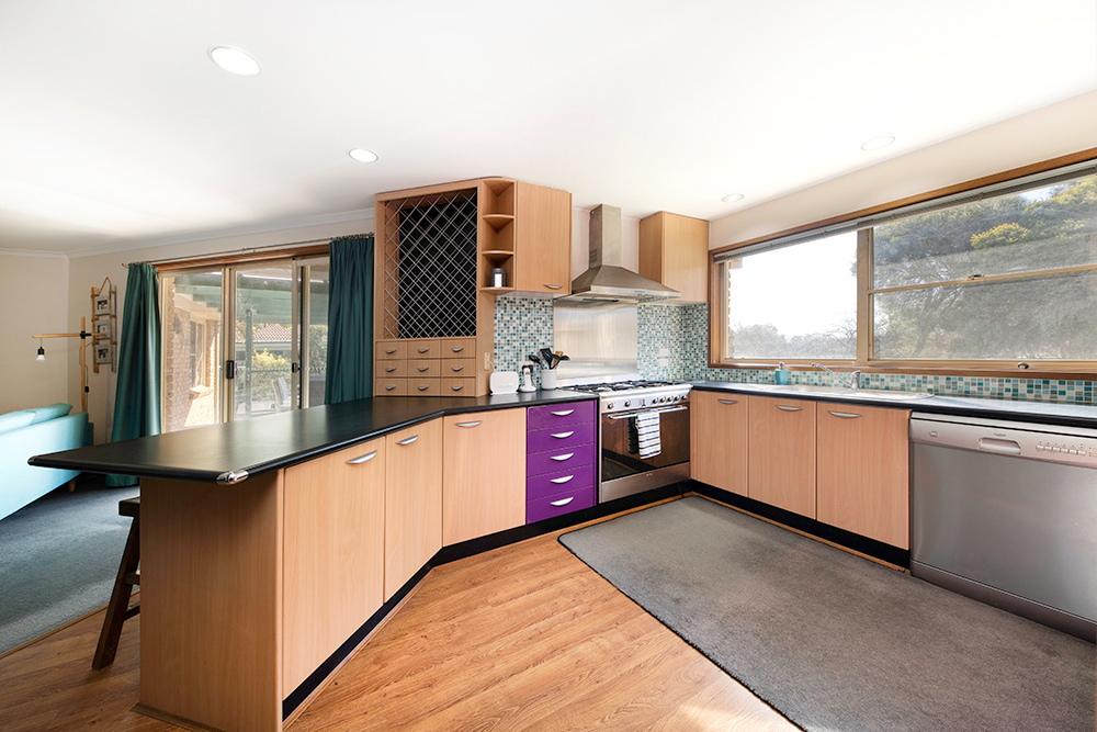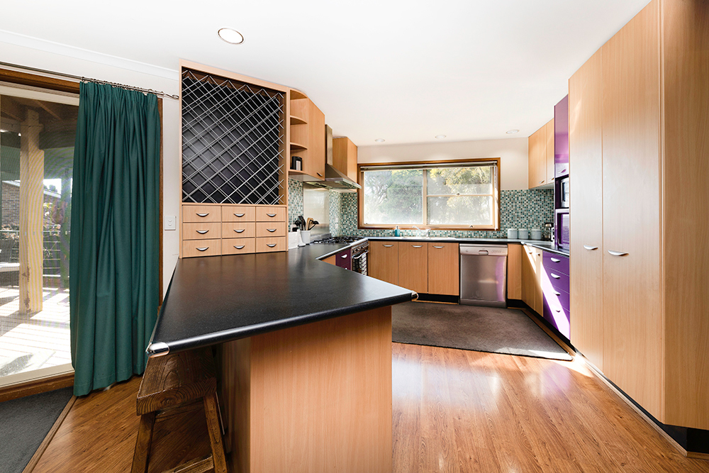 – Large kitchen with ample cupboard & bench space as well as a dishwasher & garden views