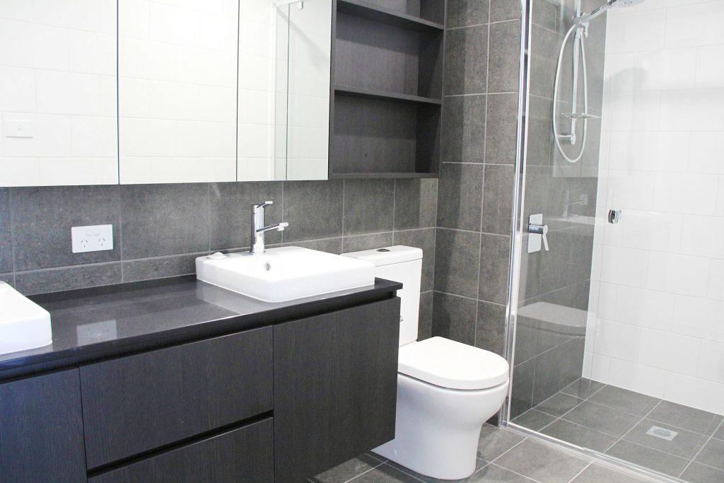 Stylish main bathroom with double basin vanity.