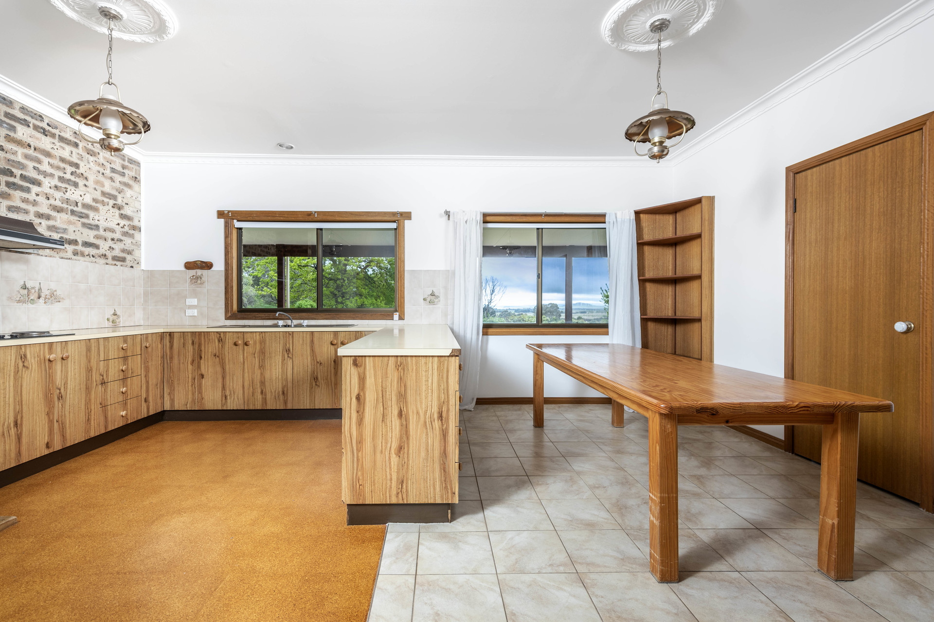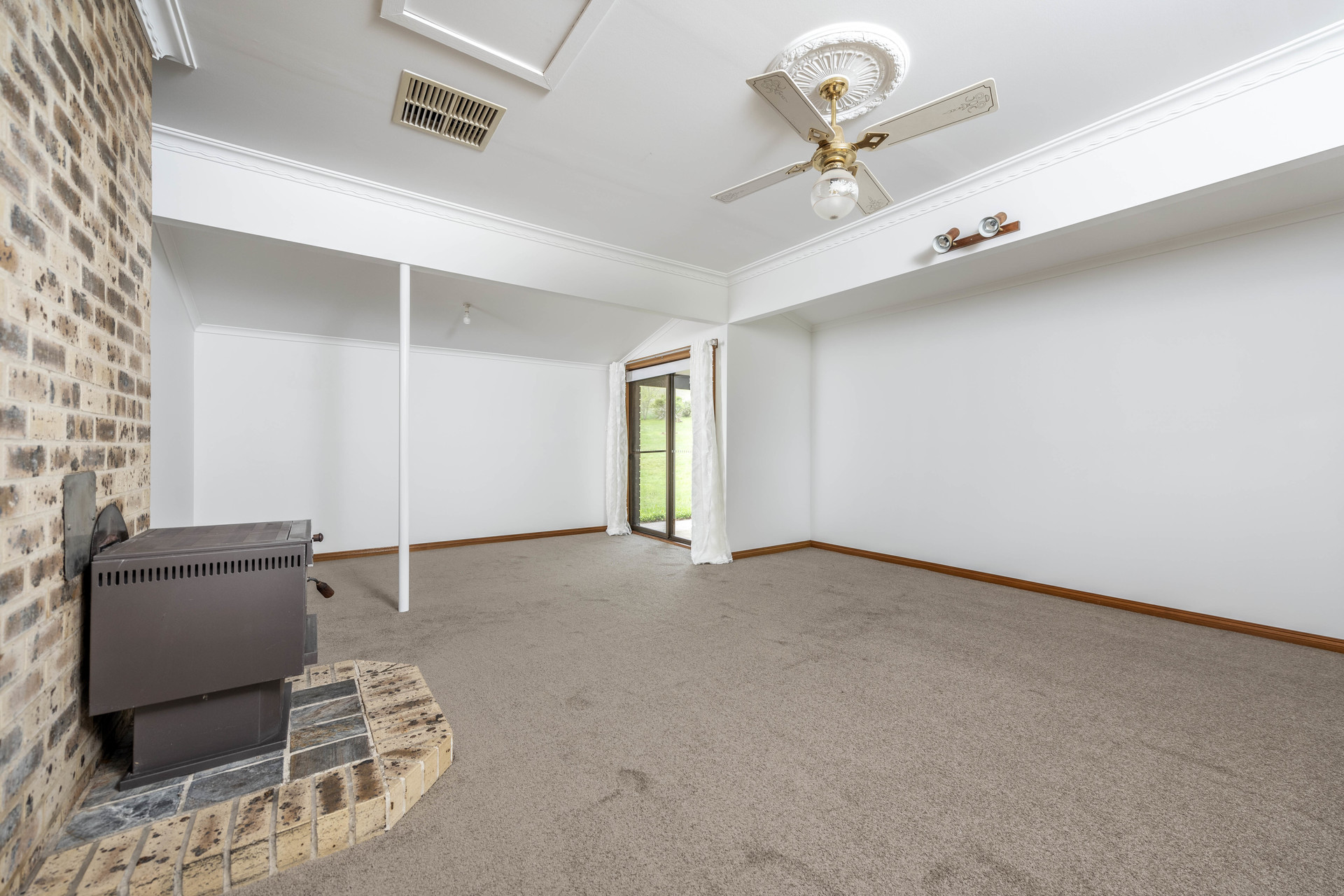 Wood heater in lounge area, gas heating in kitchen/dining and evaporative cooling throughout the house.