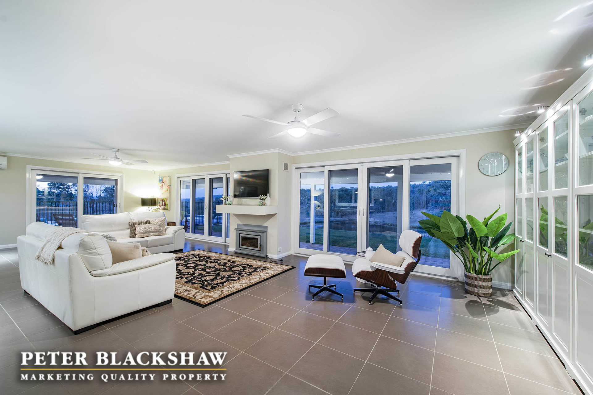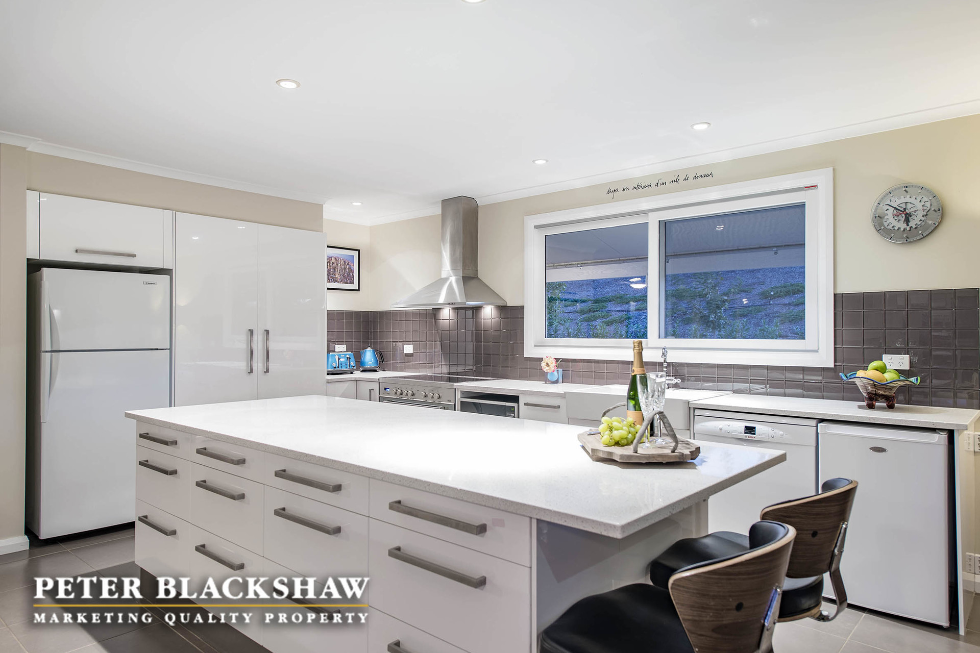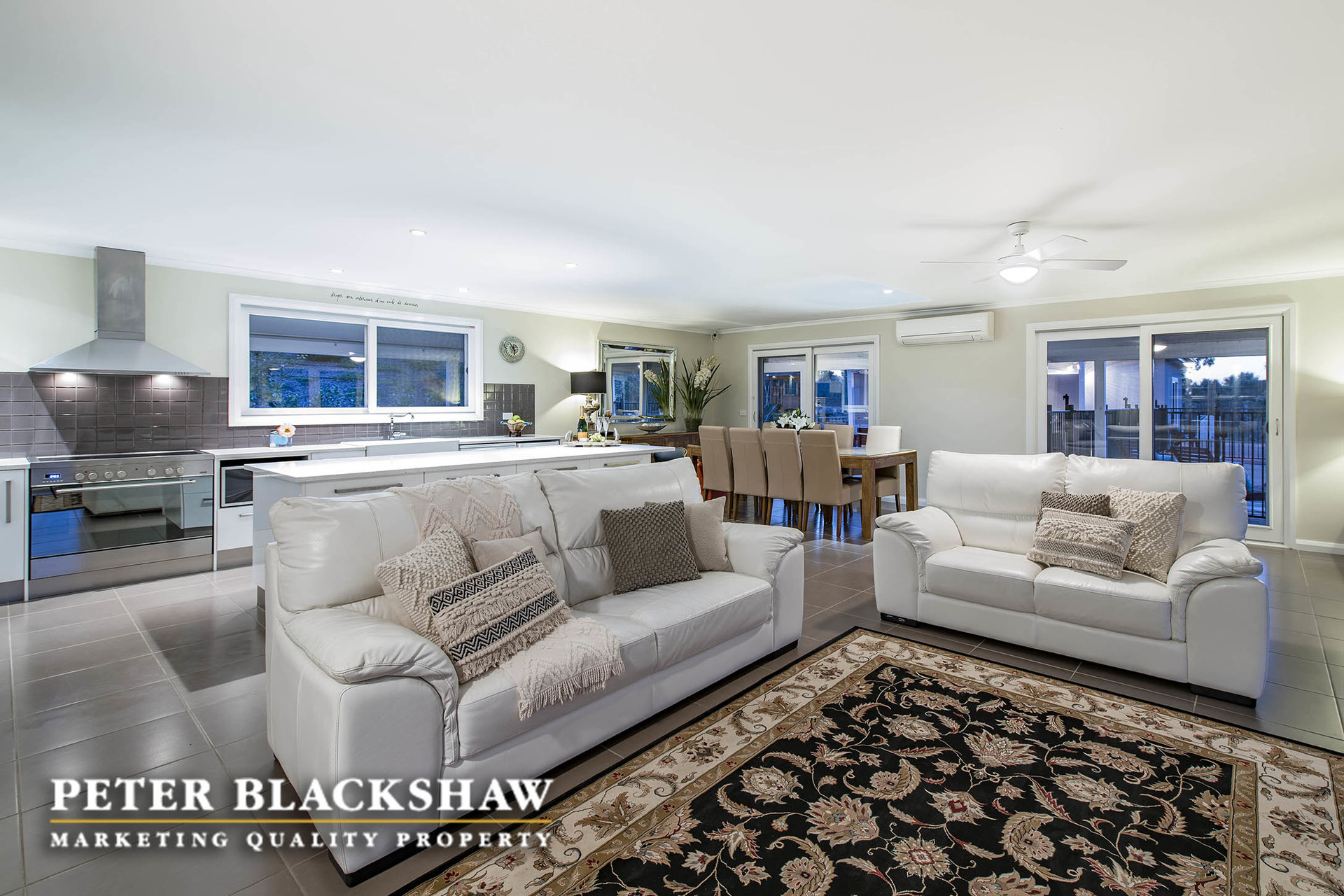 – Oversized open plan living, dining and kitchen with quality Italian porcelain tiles