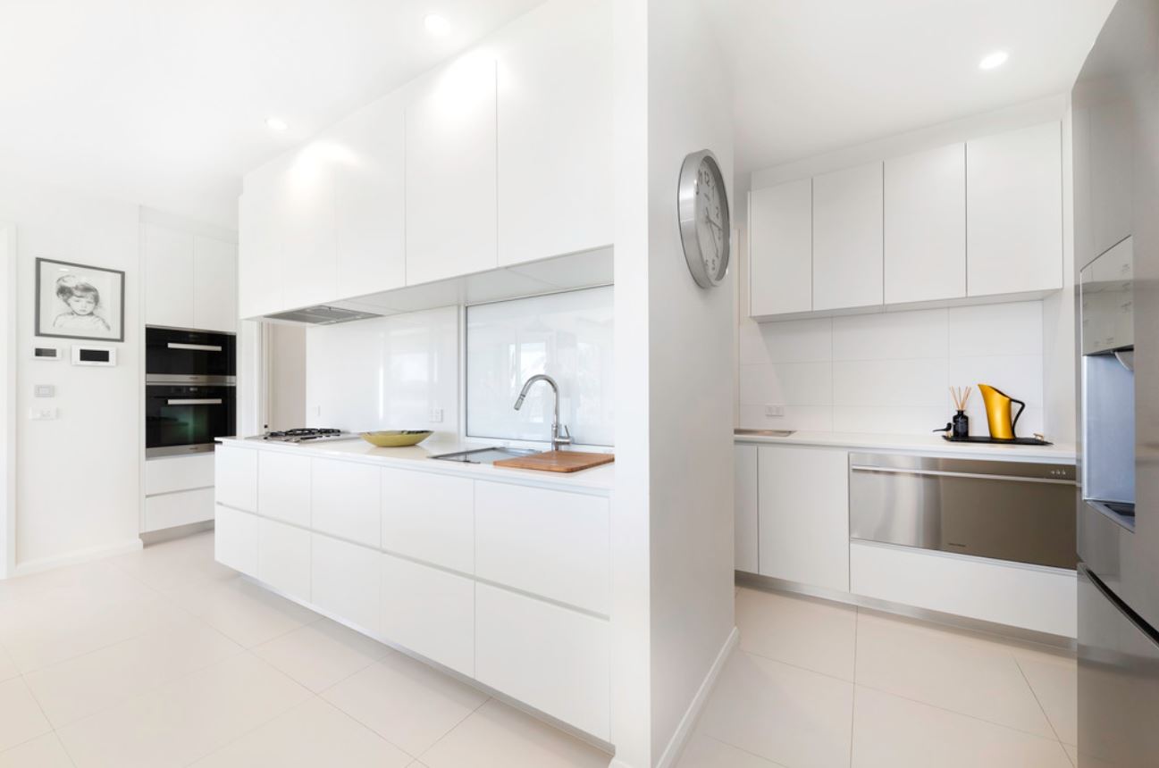 A minimalist dream: the butler’s pantry and handle-free storage of current listing 98 Edgeworth Parade in Coombs.